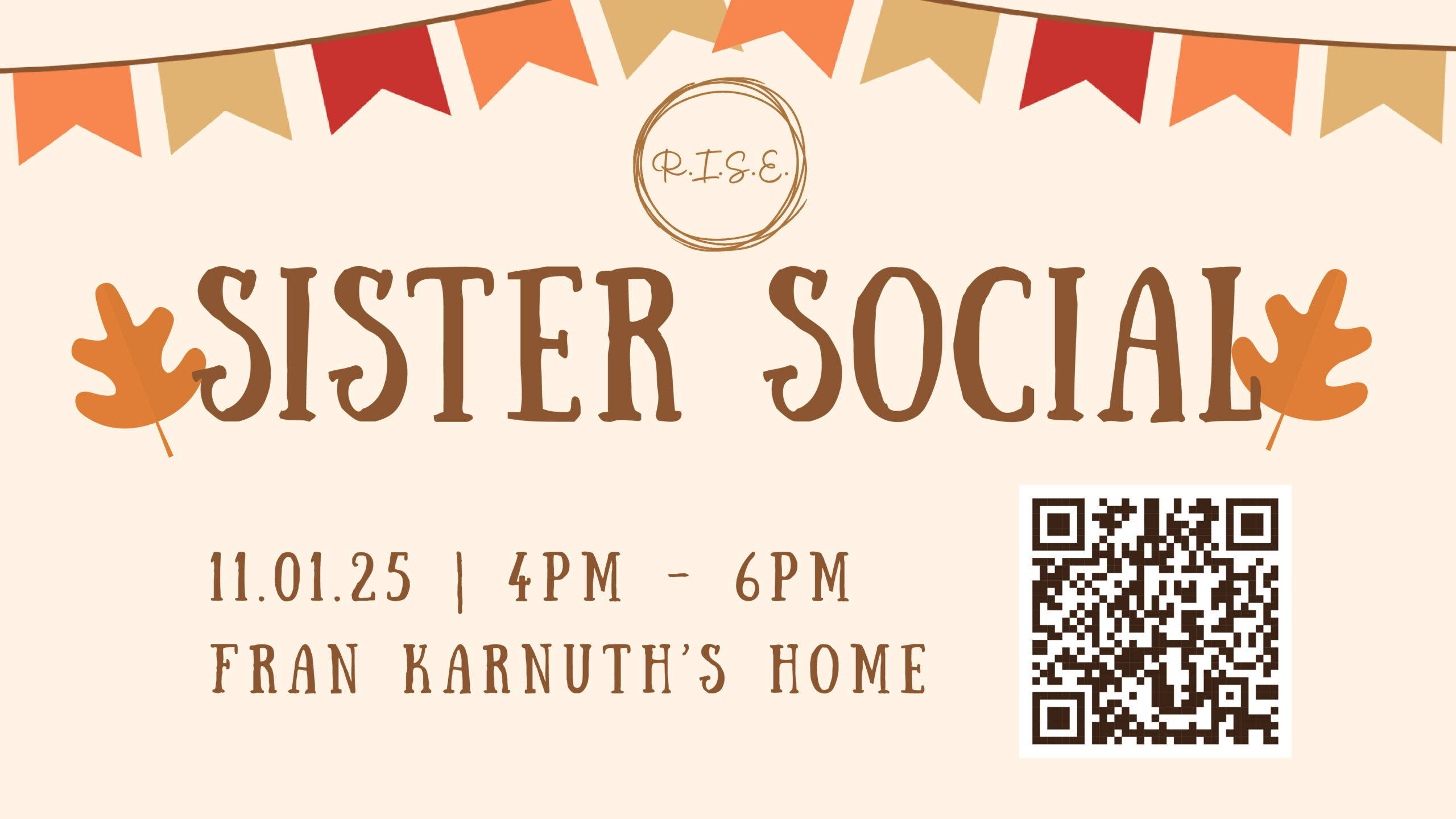 Sisters, you’re invited! Join us for an evening of connection, laughter, and Franz’s famous chili at the Sister Social on November 1st from 4-6pm.