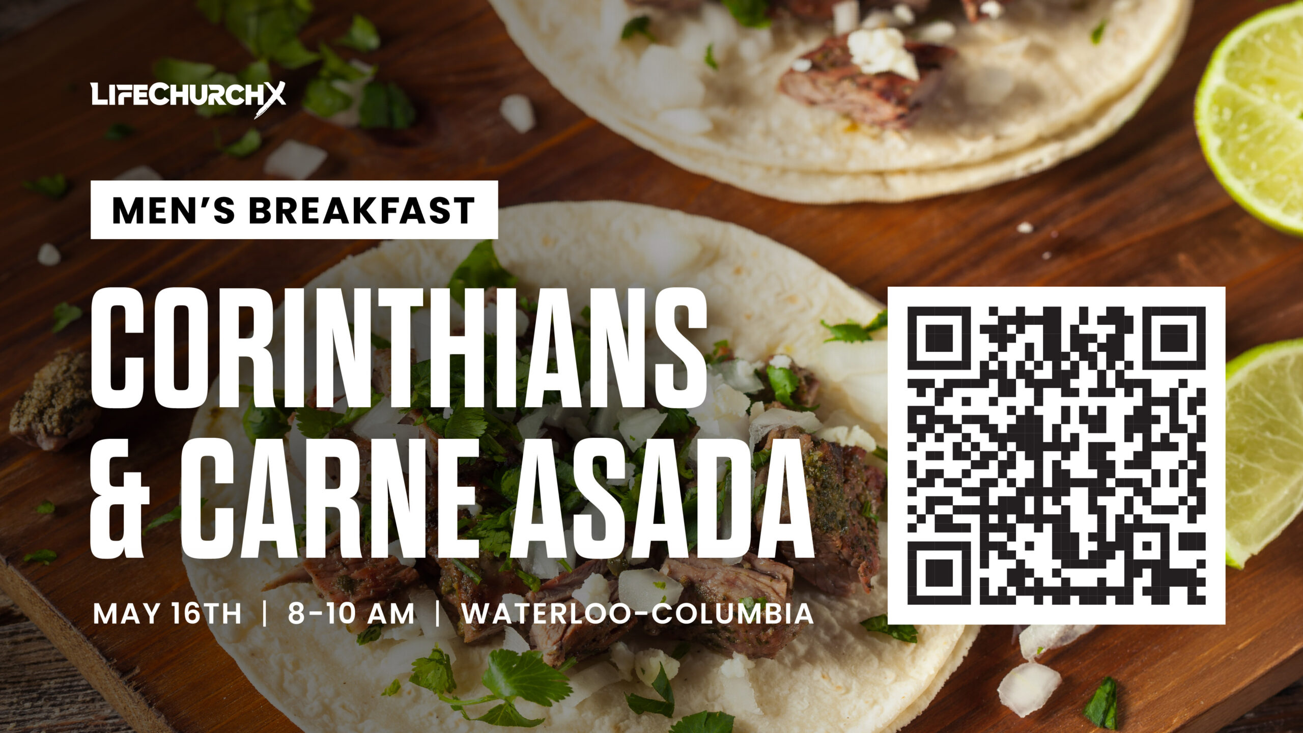 Join us for a men's breakfast, Corinthians & Carne Asada, on Saturday, May 16th from 8am to 10am. We look forward to a morning of fellowship and good food!